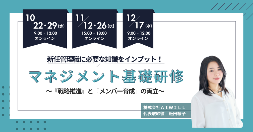 12月17日【公開講座】マネジメント基礎研修 ~「戦略推進」と「メンバー育成」の両立~@オンライン